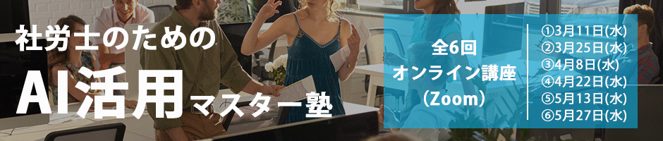 | セミナータイトル | 社労士のためのAI活用マスター塾 |