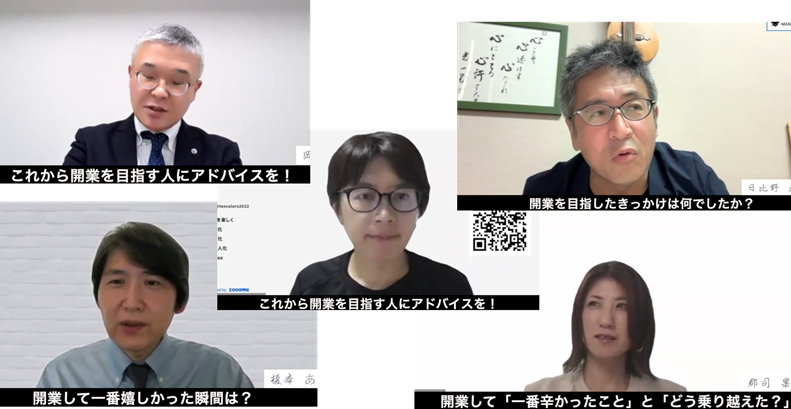 実際に開業を果たし、第一線で活躍する講師陣が、自らの開業ストーリーと、そこに込めた想いを語ります。