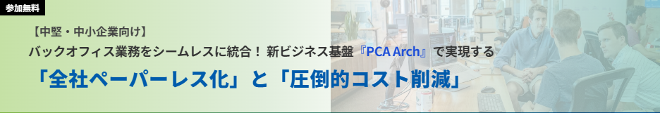 【中堅・中小企業向け】バックオフィス業務をシームレスに統合! 新ビジネ ス基盤『PCA Arch』で実現する「全社ペーパーレス化」と「圧倒的コスト削減 」
