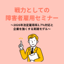 ![]() 【参加無料】戦力としての障害者雇用セミナー ~2026年法定雇用率2.7%対応と、企業を強くする実践モデル~講師:賀村 研氏、木下 文彦氏 2026年7月に法定雇用率が2.7%へ引き上げられ、障害者雇用は義務から企業成長の戦略へと重要性が高まっています。しかし多くの企業では採用・定着・戦力化・社内理解の不足といった課題が顕在化。本セミナーでは、カムラックの実践事例と社労士の現場視点から、障害者雇用を「企業を強くする投資」と捉えるための具体策を紹介します。 |