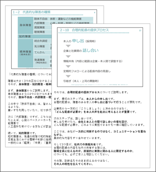 - 管理職・一般社員への職場説明がそのまま実施できる