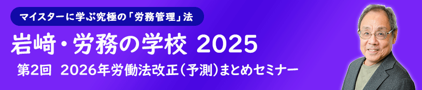 最新の法改正や実務家として知っておくべき労働法に関する基礎知識などを、社会保険労務士のマイスターである岩崎仁弥(いわさききみや)氏に学ぶ「岩﨑・労務の学校」(旧 岩﨑労務アカデミー)。