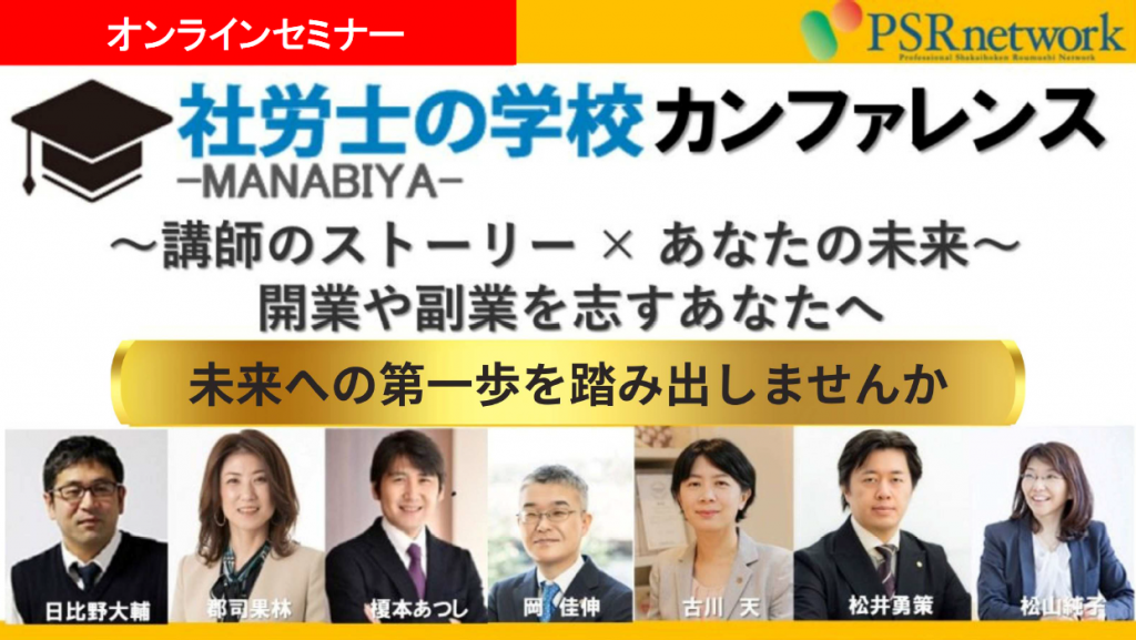 | タイトル | 社労士の学校 -MANABIYA- カンファレンス ~講師のストーリー×あなたの未来 ~ 開業や副業を志すあなたへ! |