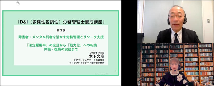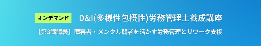 【オンデマンド】障害者・メンタル弱者を活かす労務管理とリワーク支援~D&I(多様性包摂性)労務管理士養成講座 【第3講講義】~